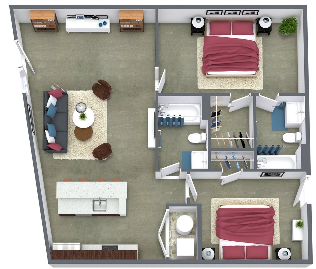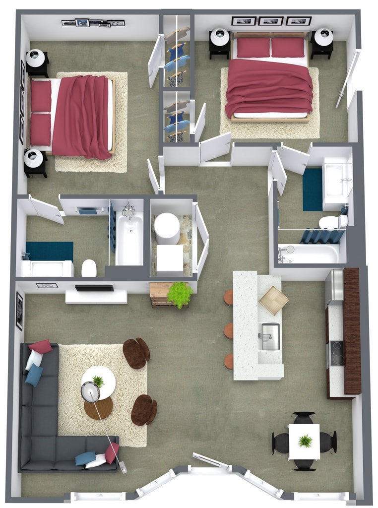 1 Bed, 1 Bath, 634-681 sq ftAvailable NowModel Gallery