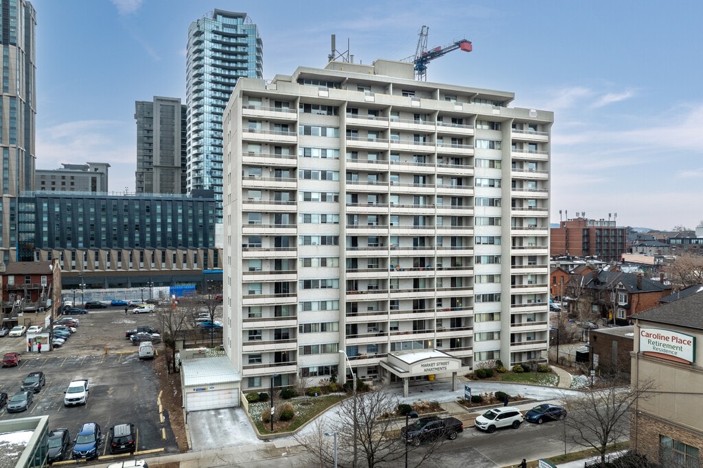 Market Street Apartments: Bay Street North and King Street West Realstar’s Market Street Apartments are located in the heart of downtown Hamilton, directly across from FirstOntario Centre and the Hamilton Farmers' Market. This urban neighbourhood includes nearby green spaces and parks, including Victoria Park and Central Park and is an ideal living enviroment for professionals and mature adults. Our location Conveniently located, Market Street Apartments is directly across from Jackson Square and provides easy access to everything downtown Hamilton has to offer. Public transit is only minutes away as is the main thoroughfare of Highway 403. Schools, hospitals, religious centres, libraries and daycares are all within this fantastic community. Shopping and amenities are all within walking distance. Among the many grocery stores, restaurants and coffee shops, you will also find a variety of shops and services. You’re also just steps away from the famous Hess Village. Our suites This high-rise apartment building is newly renovated. Choose from a bachelor, junior one, one or two-bedroom apartment or penthouse suite. The spacious suites feature a private balcony and a mix of luxury vinyl plank and ceramic flooring. We also offer upgraded suites featuring an open-concept kitchen, designer cabinetry, stainless steel appliances, over-the-range microwave, dishwasher and custom blinds. All suites are clean and freshly painted before you move in.
