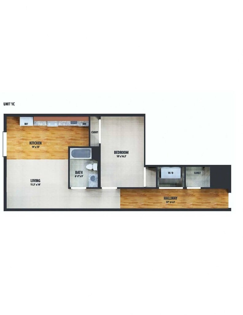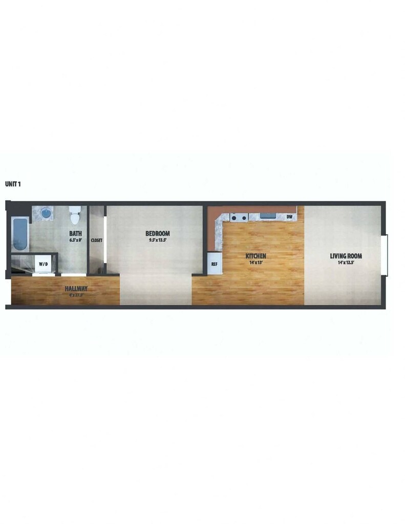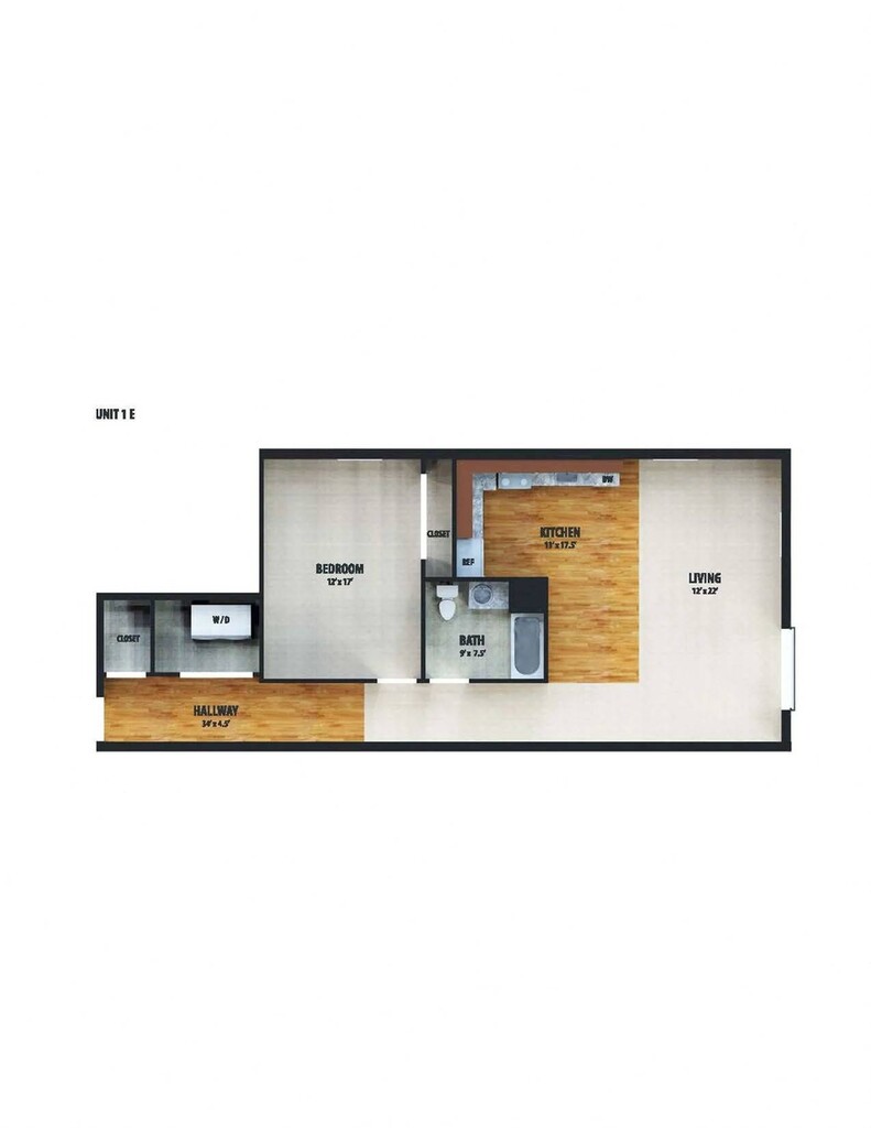 Studio/1 Bathroom - Floorplan 1 1 Bedroom