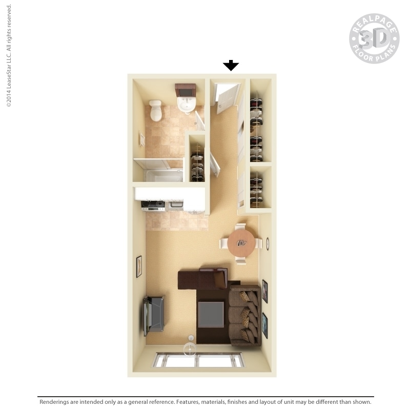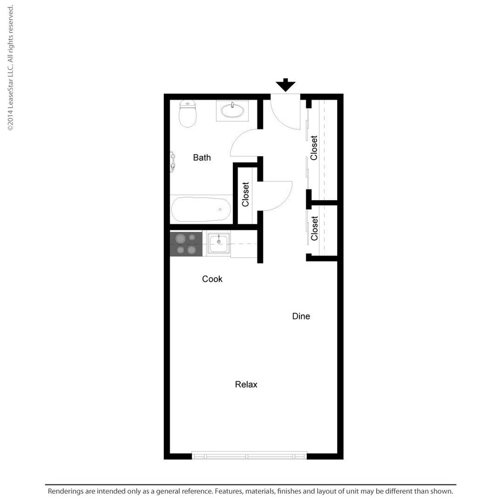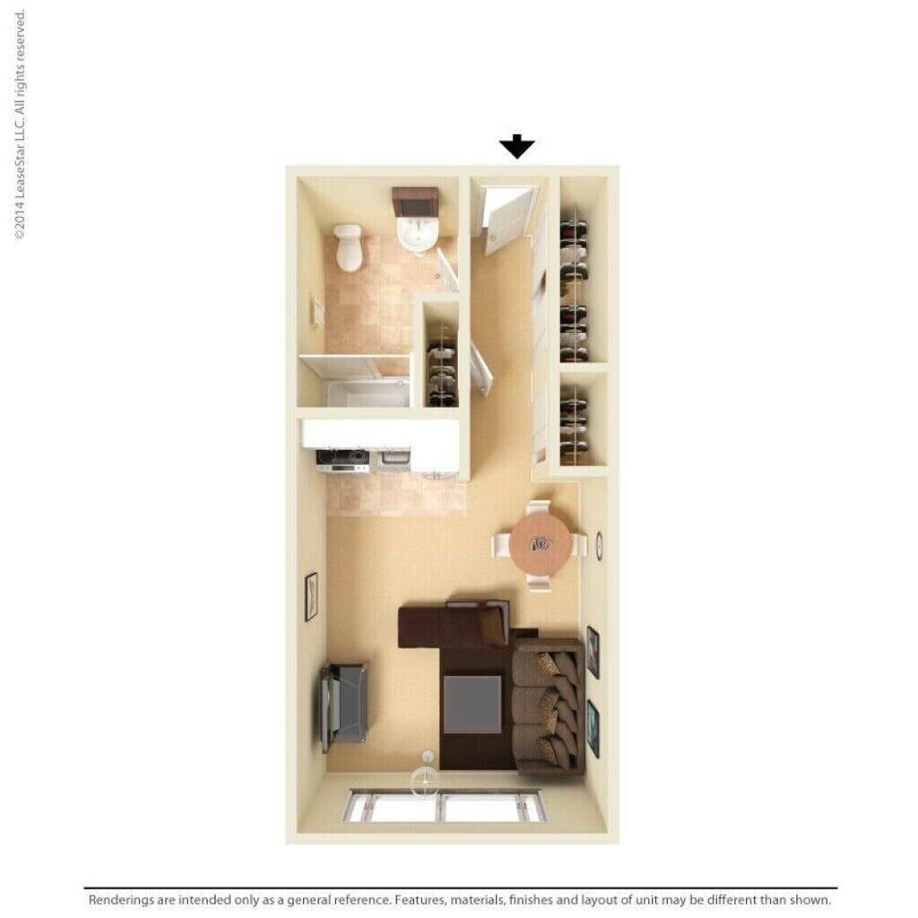 Large Studio 1 Bath - Floorplan 3 1 Bedroom
