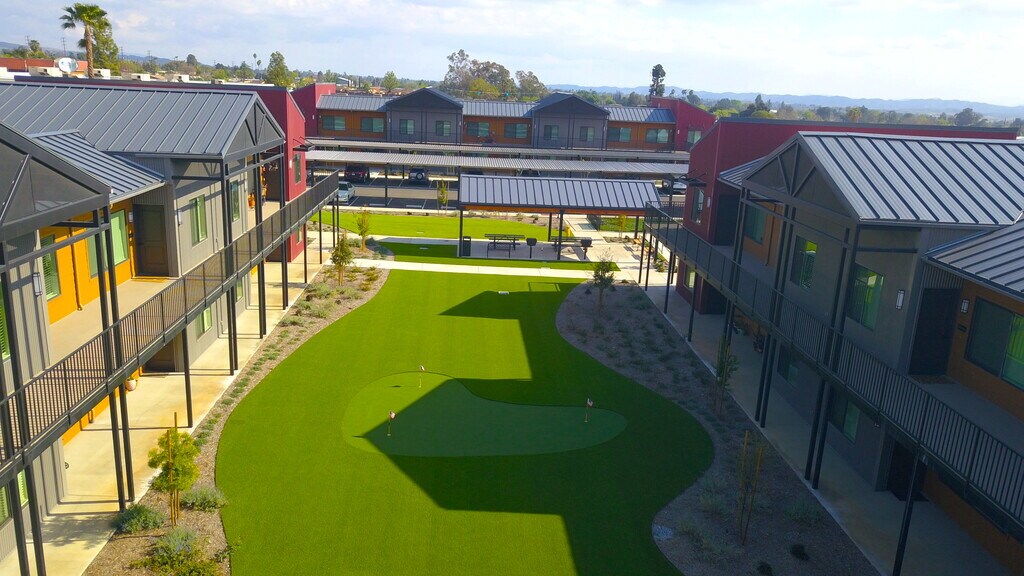 Marketplace Crossing Apartments is a modern & conveniently situated apartment complex in the heart of Yucaipa, CA. Positioned in between two commercial shopping hubs, the location of these accommodations is unparalleled. Offering brand new 1-2 bedroom apartments with a choice of upstairs units boasting high vaulted ceilings and balconies or downstairs units with fenced-in backyards. Nestled between the scenic San Bernardino mountains, our community provides a serene setting while being conveniently located between two major shopping centers in Yucaipa, giving you a metropolitan feel. Designed for those aged 55+, our community features a pet park, clubhouse with Wi-Fi, outdoor BBQ areas, and a putting course. Marketplace Crossing covers essential services such as sewer, trash/disposal, groundskeeping, and common Wi-Fi, making your living experience hassle-free. We gladly accept applicants with active Section 8 vouchers. Ready to make Marketplace Crossing Apartments your home? Apply today to enjoy the perfect blend of modern living and natural beauty! Amenities include: - Fully gated property and private parking lot with keycode access - Laundry provided in each unit, located in the pantry room - Pet park available for cats and dogs of residents - Clubhouse for weekly yoga, book club, and resident-initiated activities - Parking dock for all deliveries, taxi and Uber/Lyft service, & take-out deliveries - Residents will receive a 10% Off Community Discount Card for shops at the Marketplace at 5th Street Shopping Center - All units to have private balcony and/or private rear backyard. Second floor units all have vaulted ceilings. - Outdoor BBQ , kitchen, and courtyard for parties - Communal park and golf putting course - True mixed-use living - over 50 stores and services within immediate walking distance. No car is needed, unless desired.