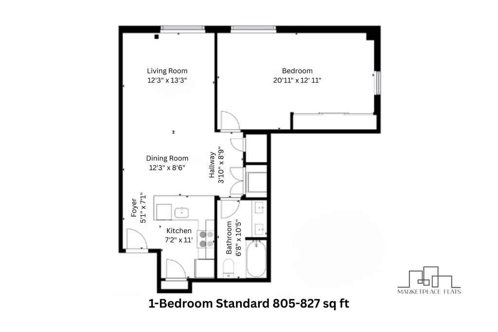 Call us today for rates on the Studio to 2 options at Marketplace Flats