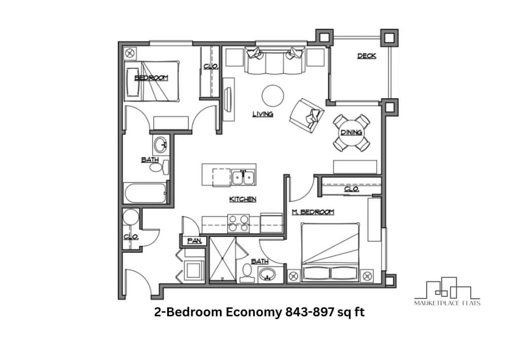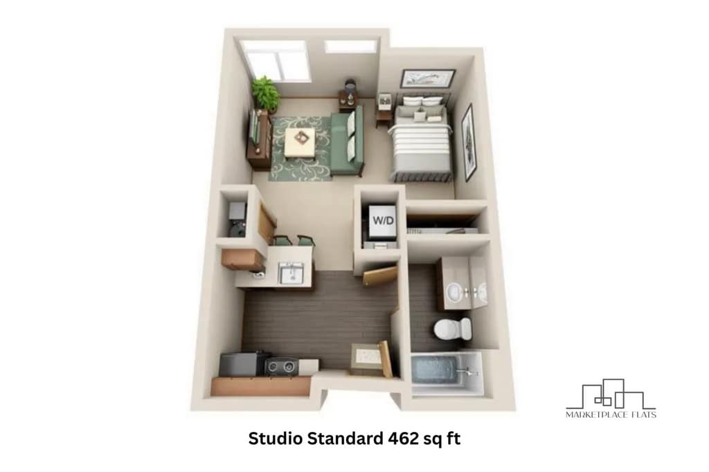 Marketplace Flats offers Studio to 2 Bedroom apartments having 462–1,016 sqft. Here is the current pricing and availability: