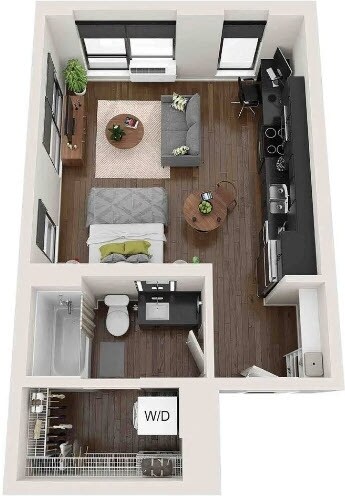 S1B - Floorplan 1 Apartment Unit: 308Apartment Model: S1B$1,350Studio, 1 Bath, 430 sq ftAvailable December 1, 2025Floorplan S3