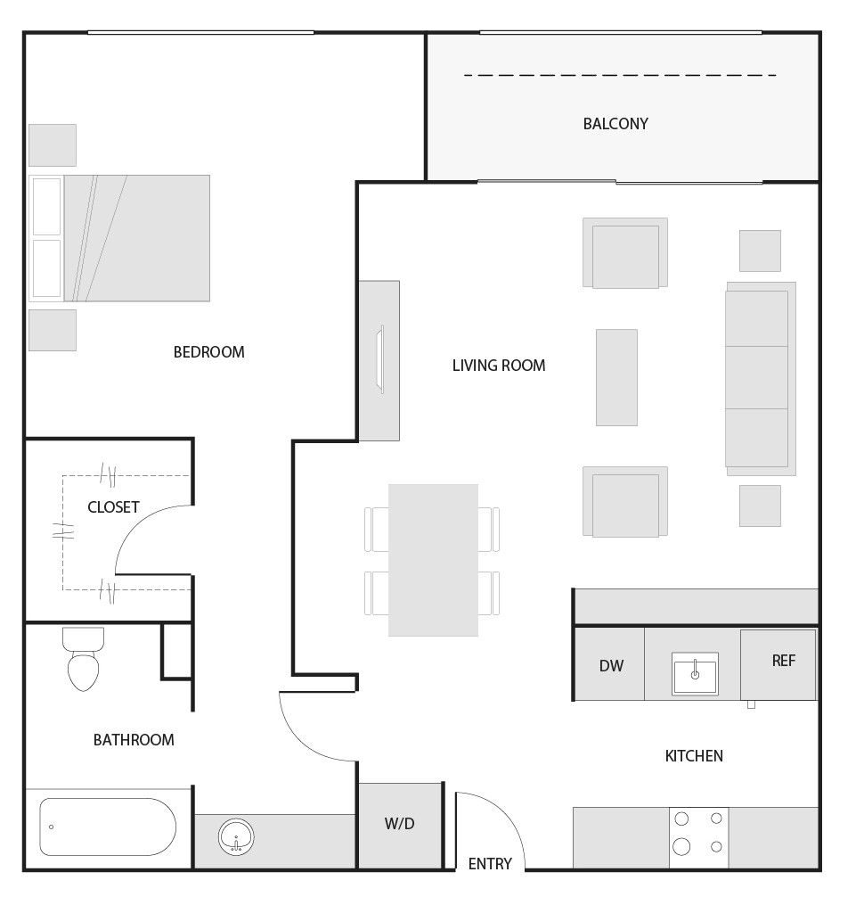 1 Bed, 1 Bath, 755 sq ftAvailable NowModel Gallery