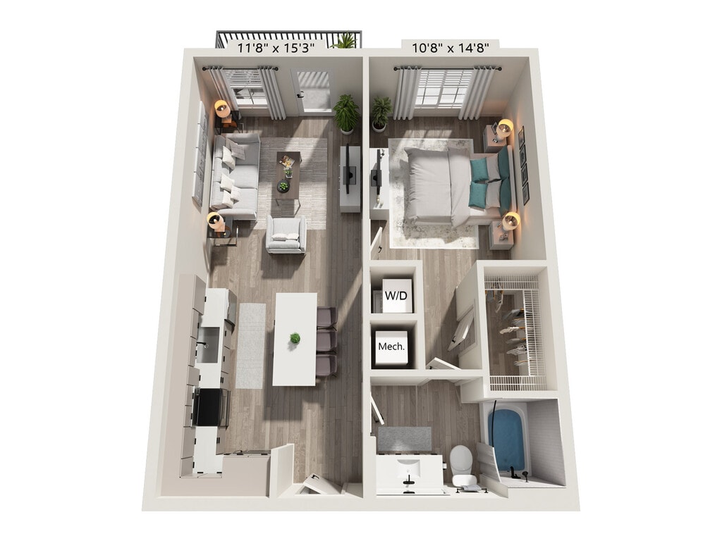 1 Bed, 1 Bath, 715 sq ftAvailable NowModel Gallery