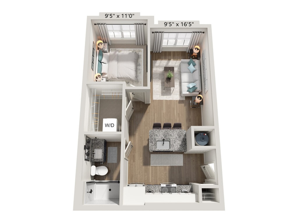 Apartment Model: A1AFrom $1,4251 Bedroom, 1 Bath, 579 sq ftAvailable NowFloor plans are artist's rendering. All dimensions are approximate. Actual product and specifications may vary in dimension or detail. Not all features are available in every rental home. Prices and availability are subject to change. Base rent is based on monthly frequency. Additional fees may apply, such as but not limited to package delivery, trash, water, amenities, etc. Deposits vary. Please see a representative for details.