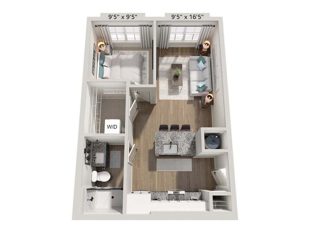 Apartment Model: A1From $1,4251 Bedroom, 1 Bath, 560 sq ftAvailable NowFloor plans are artist's rendering. All dimensions are approximate. Actual product and specifications may vary in dimension or detail. Not all features are available in every rental home. Prices and availability are subject to change. Base rent is based on monthly frequency. Additional fees may apply, such as but not limited to package delivery, trash, water, amenities, etc. Deposits vary. Please see a representative for details.
