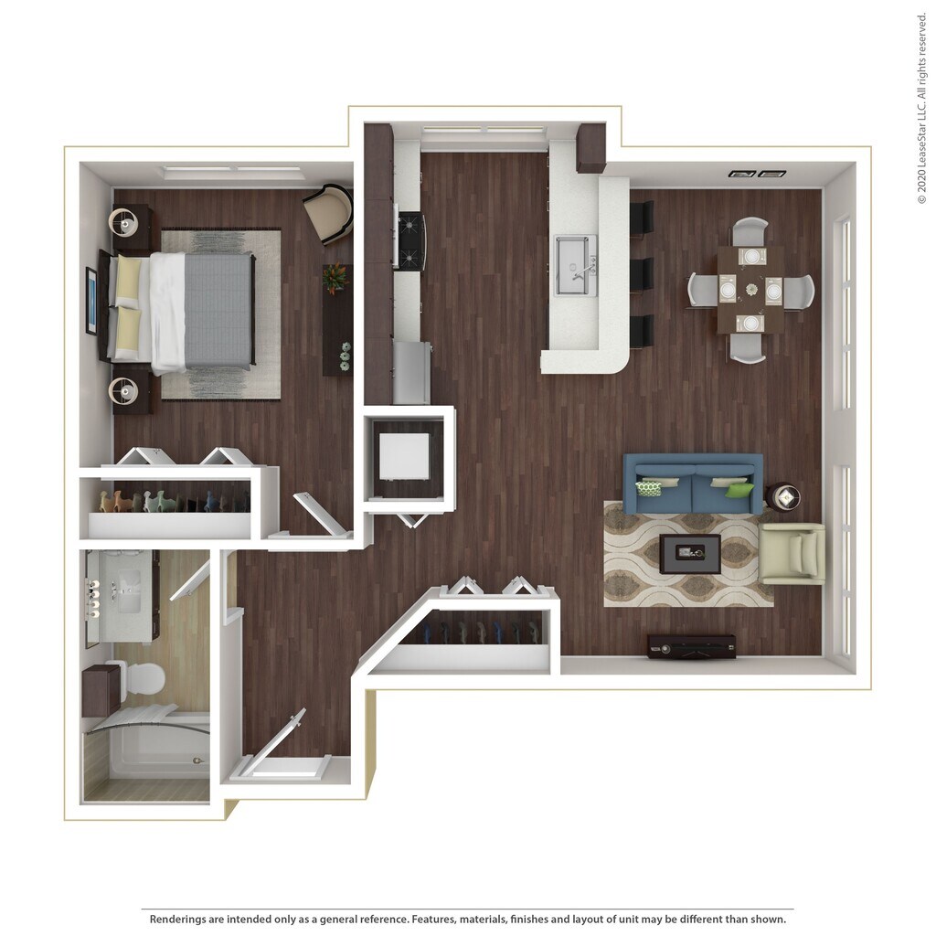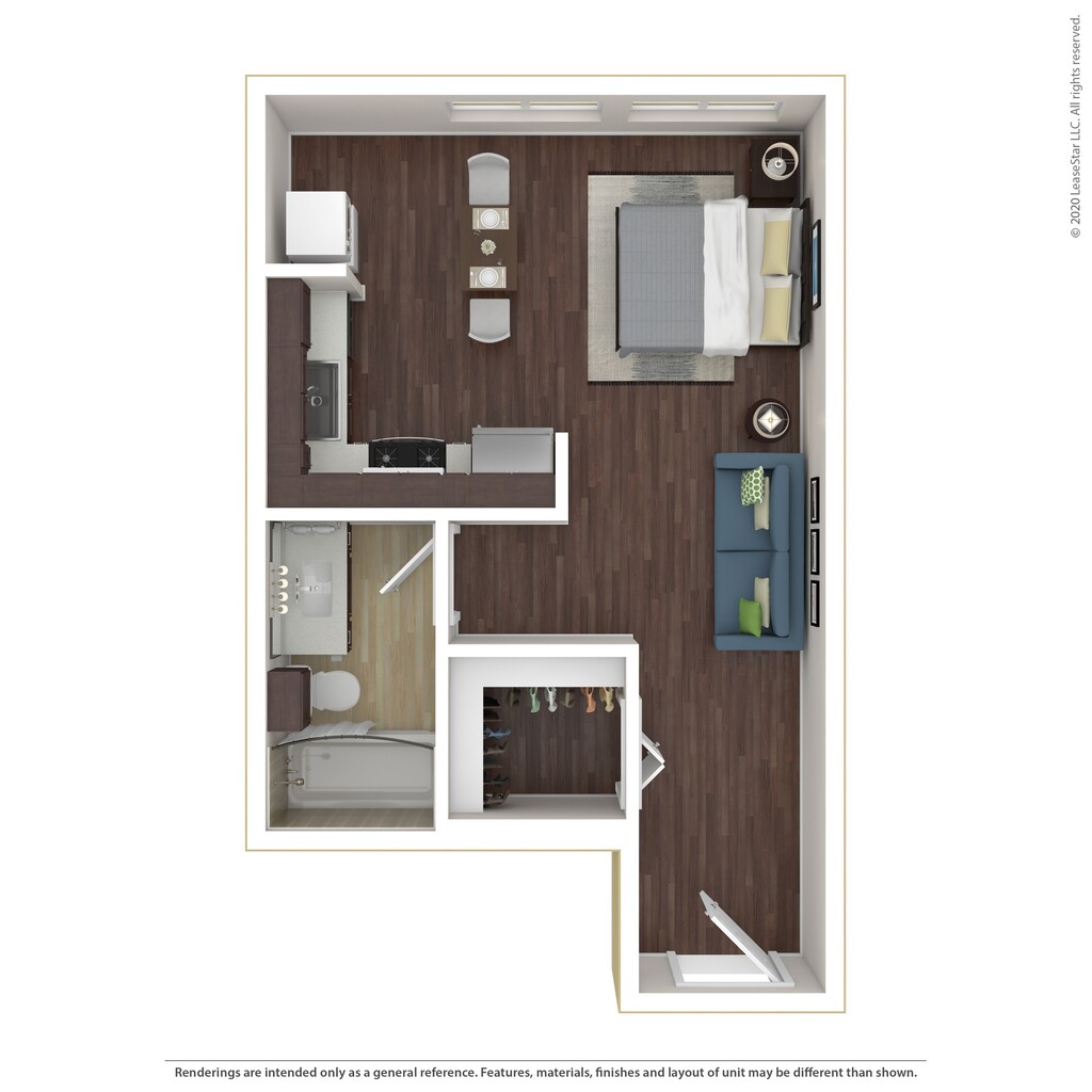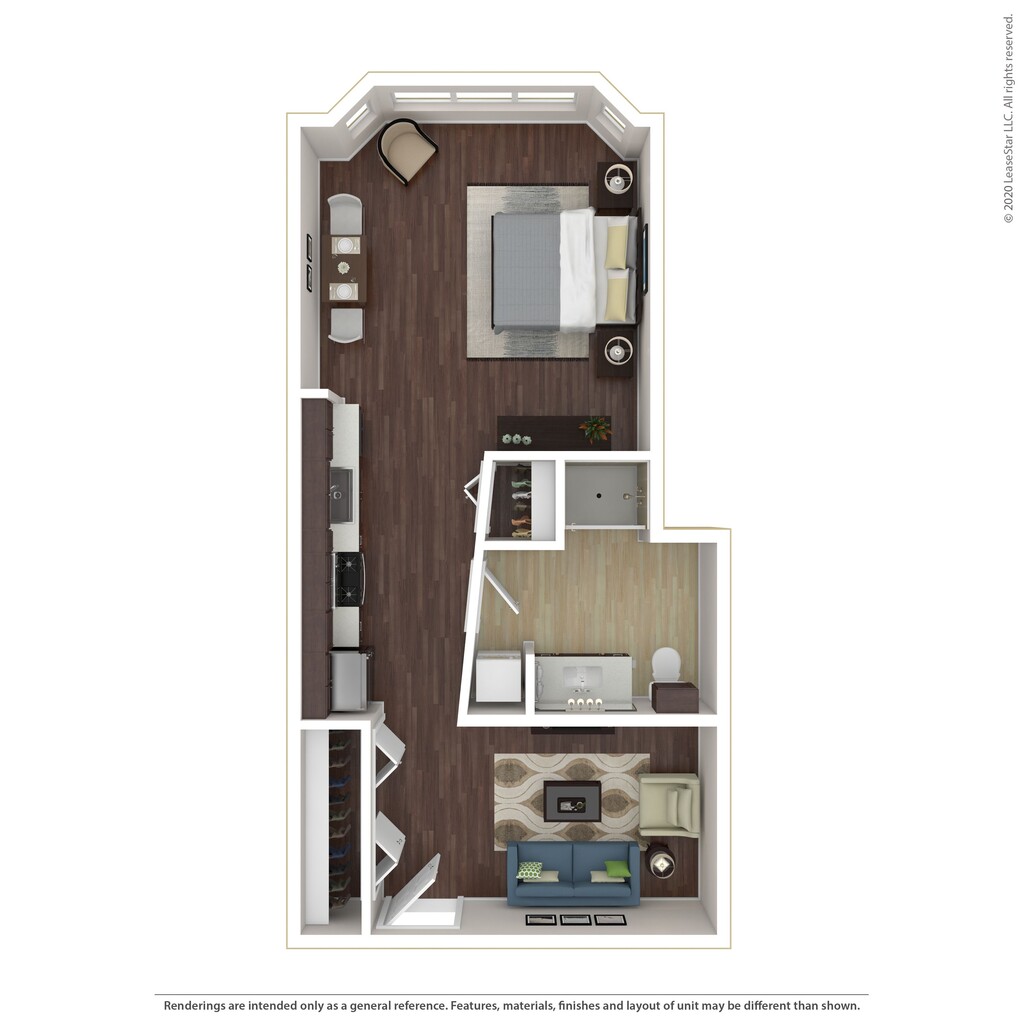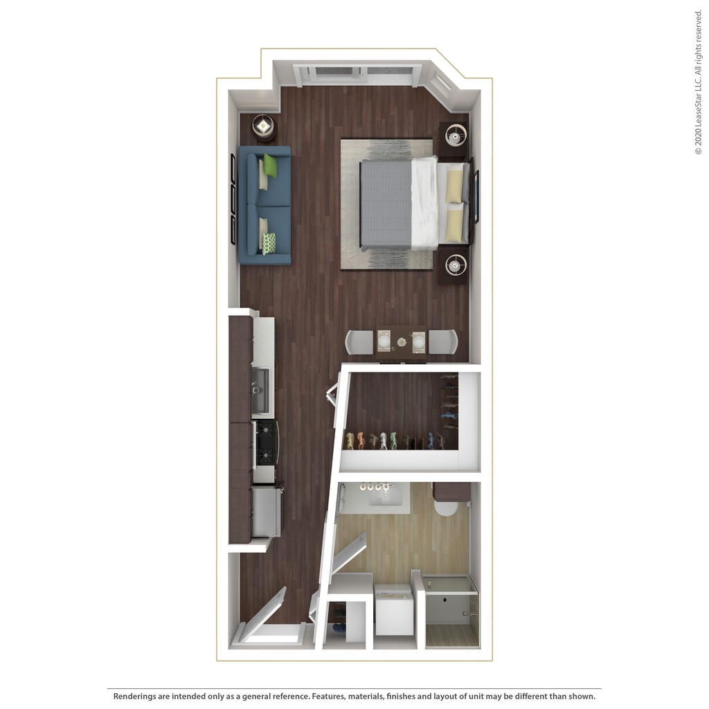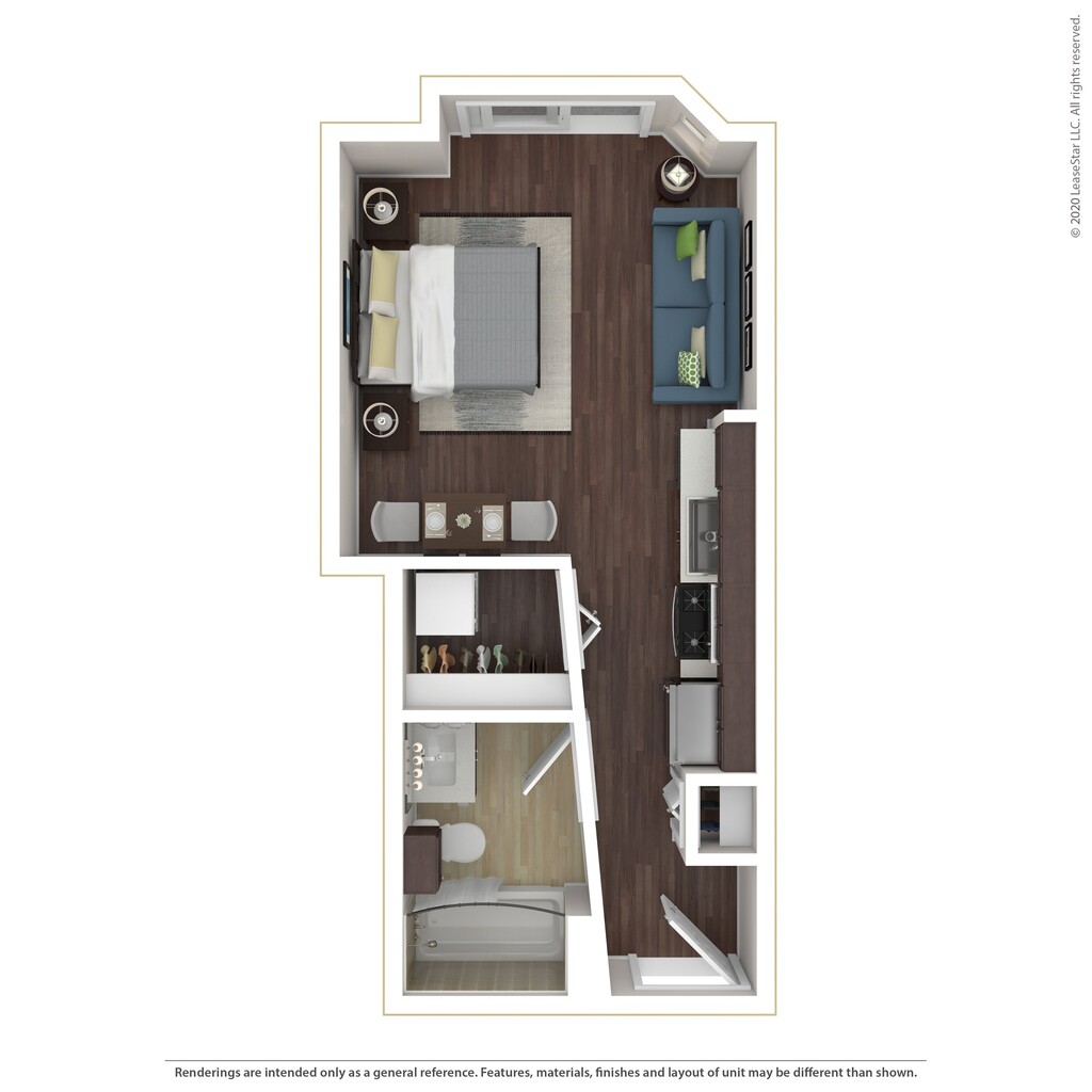 0F - Floorplan 1 Apartment Unit: 409Apartment Model: 0F$2,034Studio, 1 Bath, 576 sq ftAvailable NowFloorplan 0E