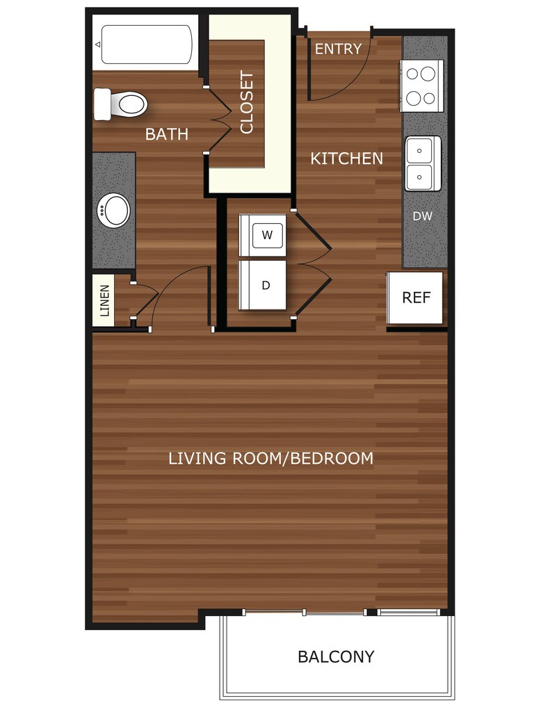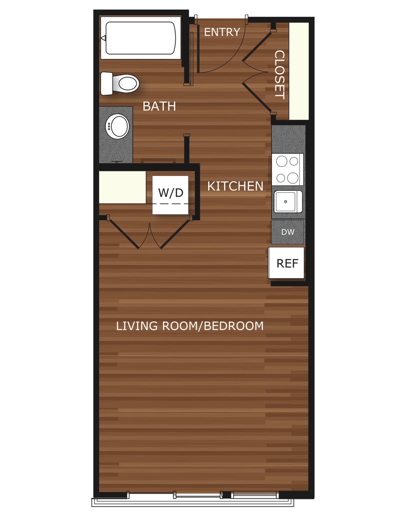 Studio, 1 Bath, 418 sq ftAvailable NowModel Gallery