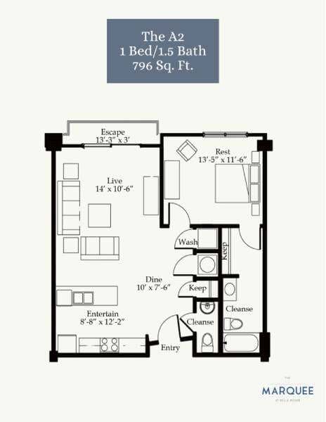 Apartment Model: A21 Bedroom, 1.5 Bath, 796 sq ftAvailable NowA2 - Floorplan 1 Apartment Unit: 212Apartment Model: A21 Bedroom, 1.5 Bath, 796 sq ftAvailable NowFloorplan A1