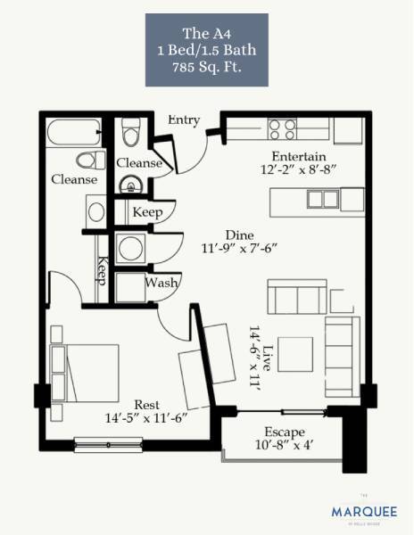 1 Bed, 1.5 Baths, 785 sq ftModel Gallery