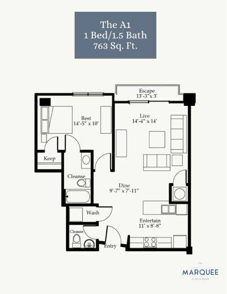 1 Bed, 1.5 Baths, 763 sq ftModel Gallery