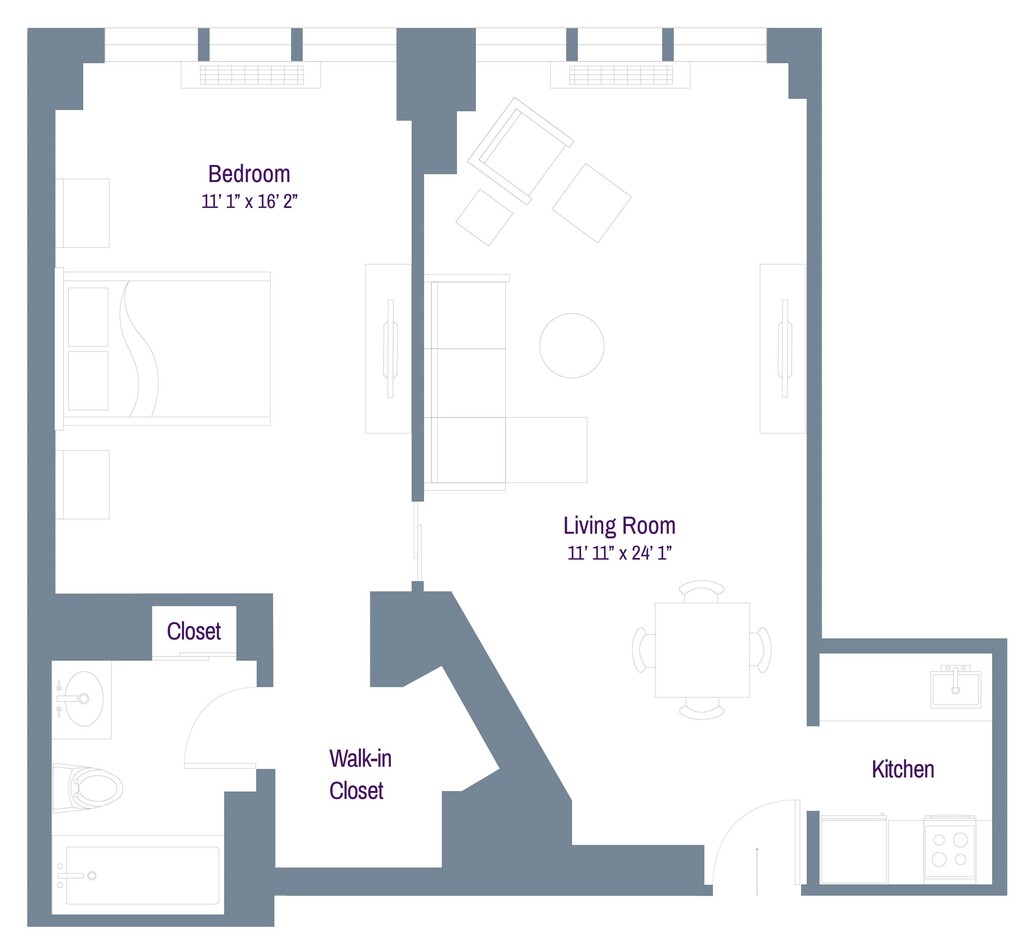Studio, 1 Bath, 500 sq ftModel Gallery