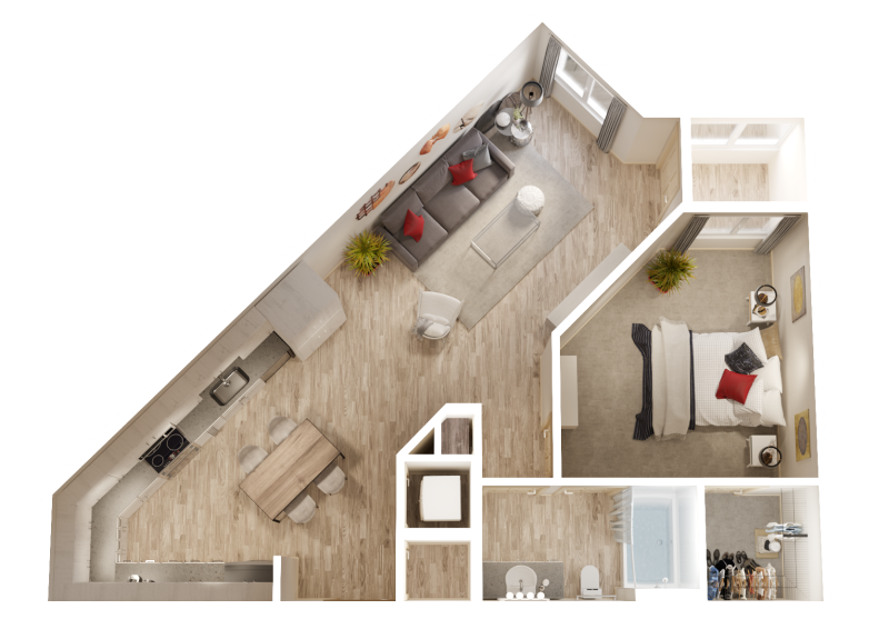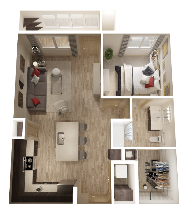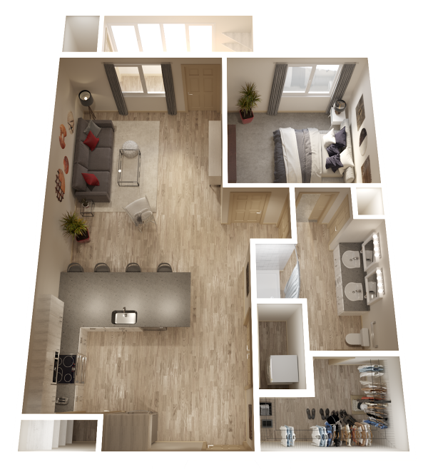1 Bed, 1 Bath, 730 sq ftAvailable NowModel Gallery