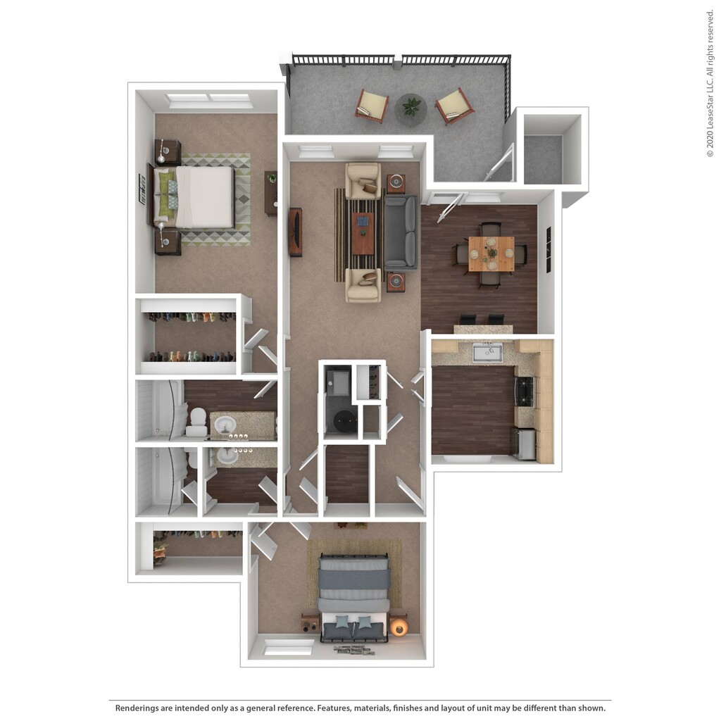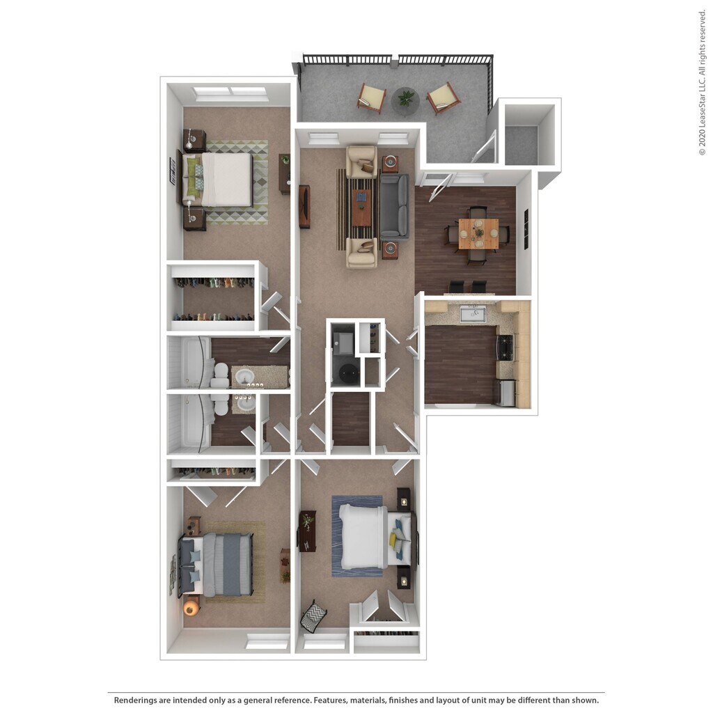 Apartment Model: 3A-RFrom $1,7823 Bedroom, 2 Bath, 1400 sq ftUnavailable![]() - 3A-R - Floorplan 1