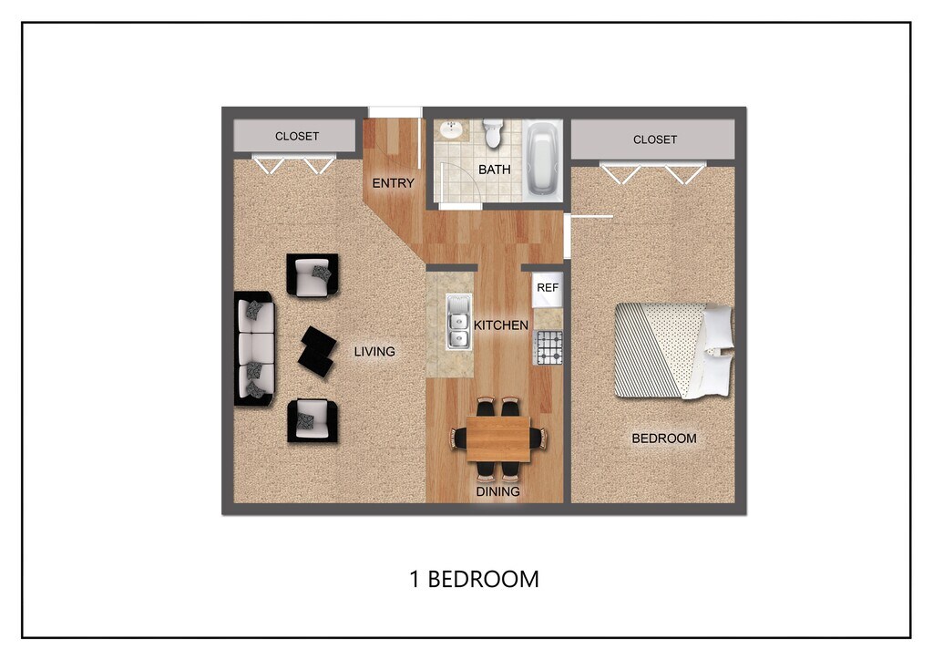 2 Beds, 1 Bath, 760 sq ftTotal Monthly PriceAvailable NowModel Gallery