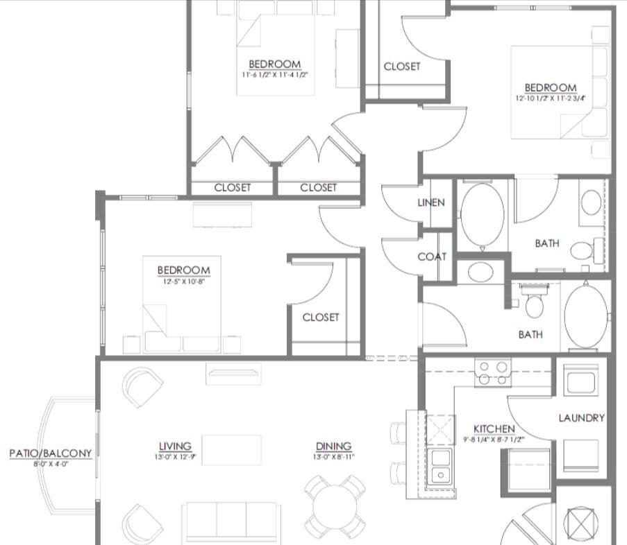 Madison - Floorplan 2 Apartment Unit: 108Apartment Model: Madison$1,6891 Bedroom, 1 Bath, 937 sq ftAvailable NowApartment Unit: 201Apartment Model: Madison$1,6891 Bedroom, 1 Bath, 937 sq ftAvailable NowApartment Unit: 301Apartment Model: Madison$1,6891 Bedroom, 1 Bath, 937 sq ftAvailable Now2 Bedrooms