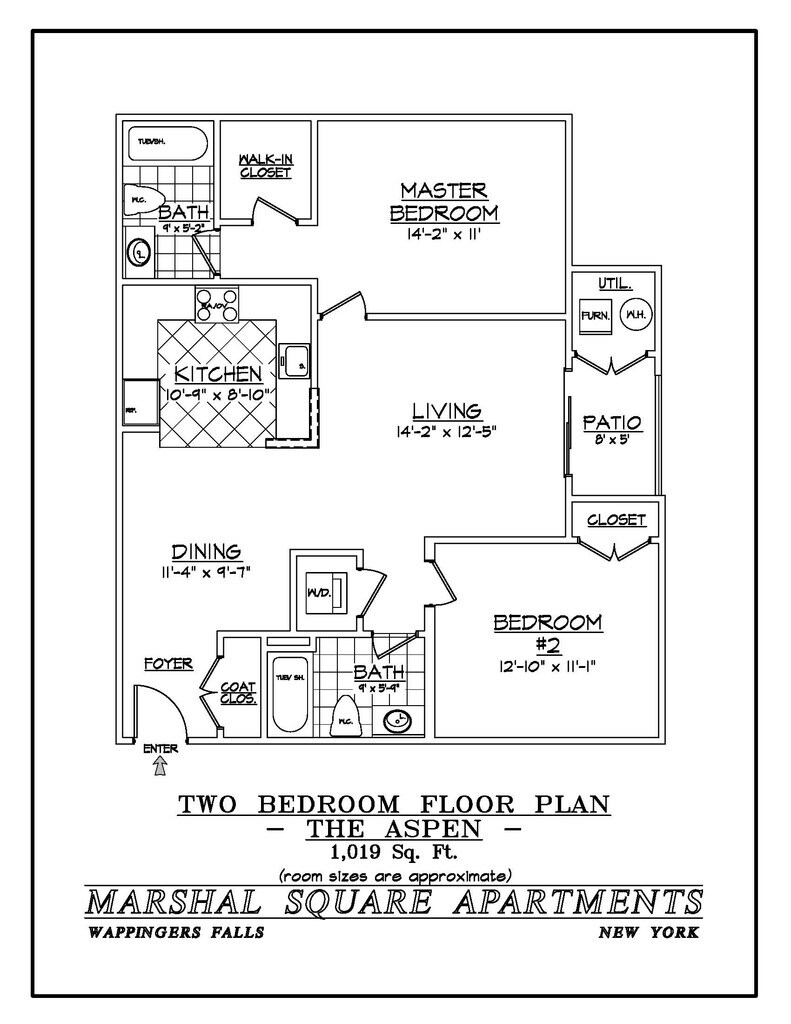 Located just off Route 9, Marshall Square couldn't be more convenient! We have 24 - 2 bedroom units to offer with 3 different layouts to choose from, all with 2 full bathrooms and their own in-unit washer and dryer. Most bedrooms have their own walk-in closet and the Master is complete with an en suite bathroom. Check out our floor plans to see the large kitchens, patio/balconies, and ample storage space. Every unit has its own intercom to our code-accessed front door. Send us an inquiry or call us today to learn more about joining our community!