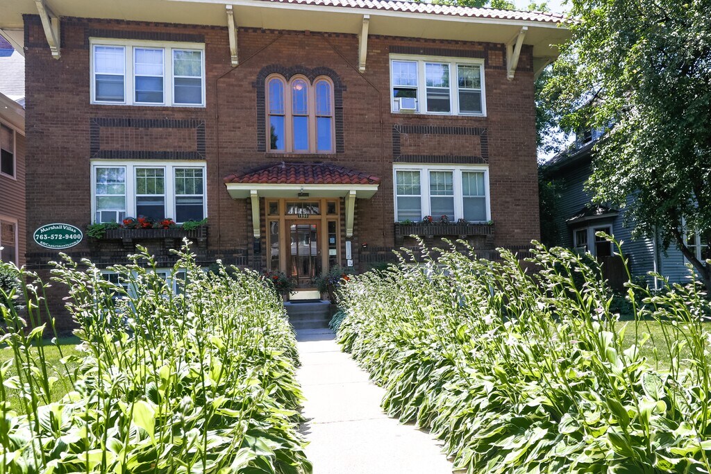 Marshall Villas is a charming, classic brownstone building in a fantastic location on Marshall Avenue. Only three blocks from the University of St. Thomas and walking distance to The Fine Grind Coffee house, Tillie's Farmhouse, Black Coffee and Waffle Bar, and Blue Door Pub . Updates and newer flooring throughout, built-in shelving, ceiling fans and freshly painted in this one of a kind, smoke-free building!!
