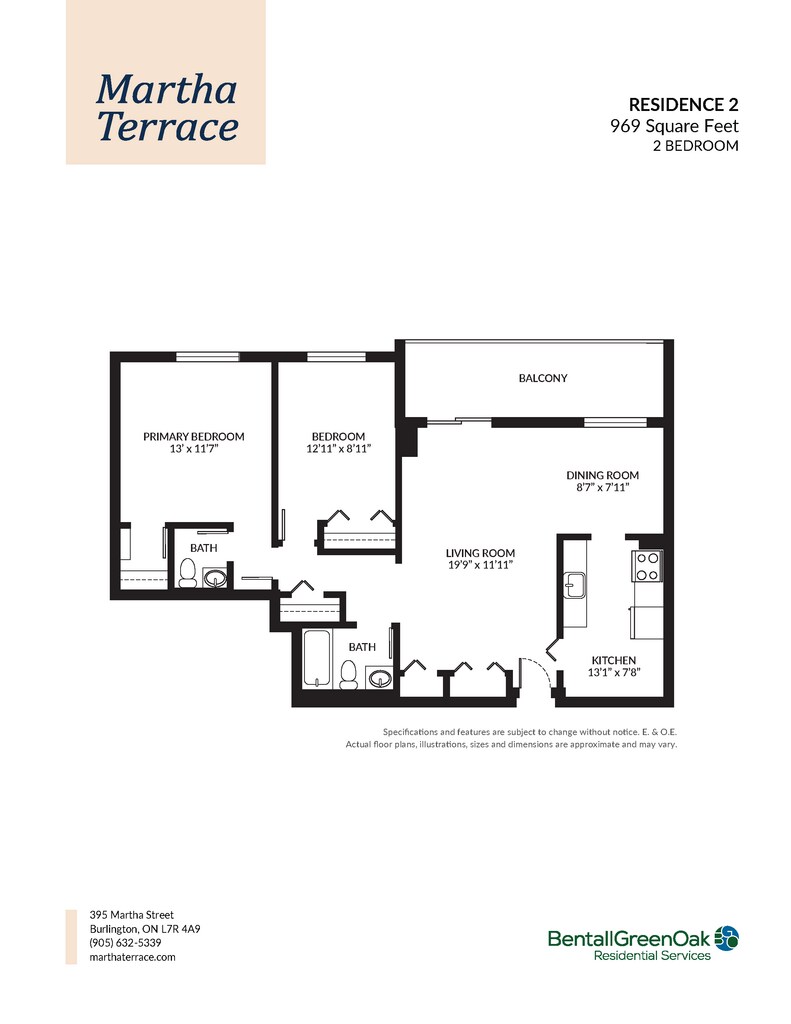 Welcome to Martha Terrace, a highly sought-after rental address in downtown Burlington that is situated on a quiet street, steps away from the peaceful shores of Lake Ontario. Here you will find spacious and well-appointed one, two and three bedroom suites, surrounded by lushly landscaped grounds and leafy walking trails. Thoughtful amenities include a fitness centre, social and games room, on-site laundry facilities, secure garage parking and on-site professional management.