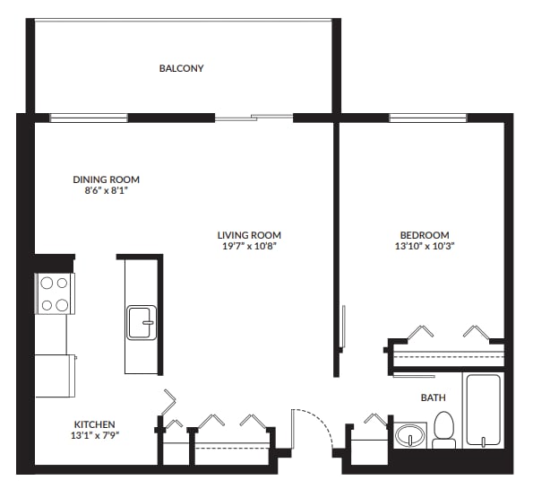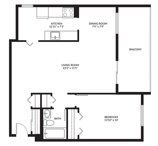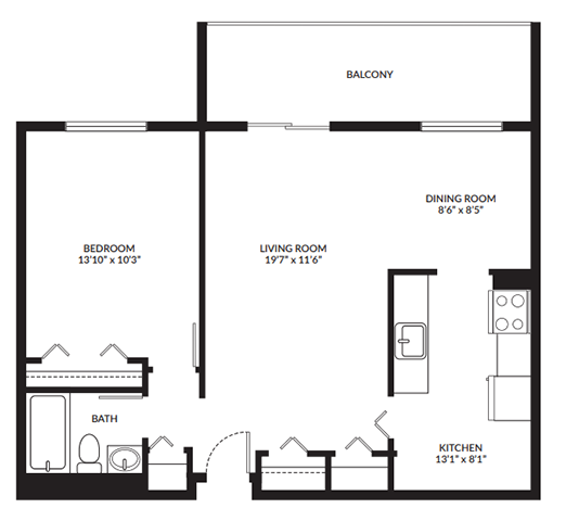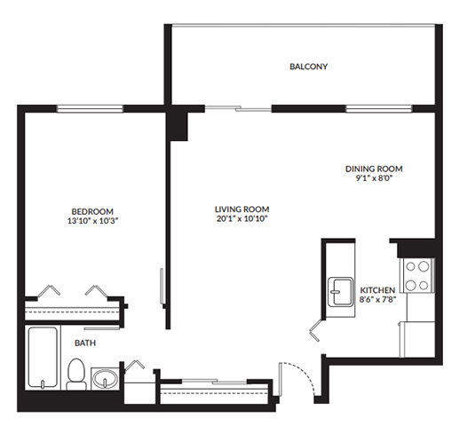 One Bedroom - Floorplan 5 Apartment Unit: 0209Apartment Model: One Bedroom1 Bedroom, 1 Bath, 757 sq ftAvailable Now![]()