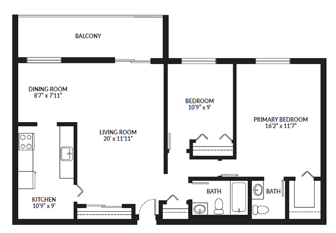 2 Beds, 2 Baths, 952-1102 sq ftAvailable NowLargest 2 BedroomThis is the largest 2 Bedroom at this PropertyModel Gallery