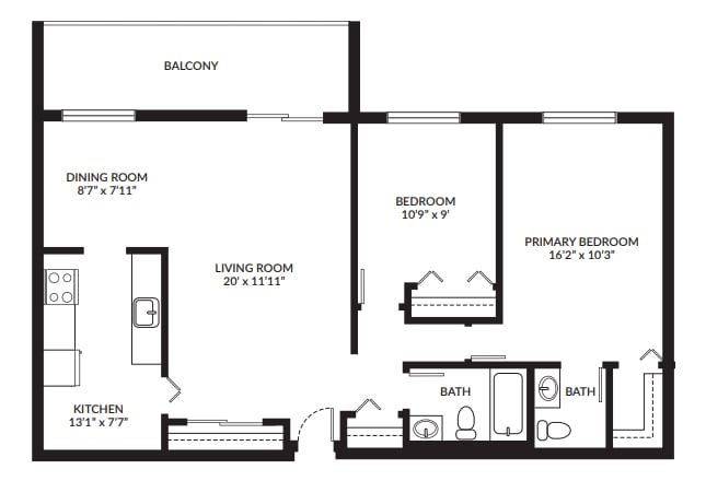 Apartment Model: Two Bedroom2 Bedroom, 2 Bath, 952-1102 sq ftAvailable Now![]()