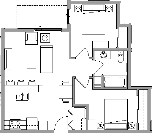 Studio, 2 Baths, 843 sq ftModel Gallery