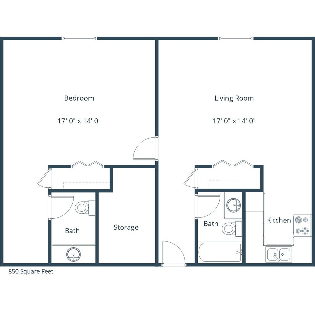 One Bedroom 115A - Floorplan 1 2 Bedrooms