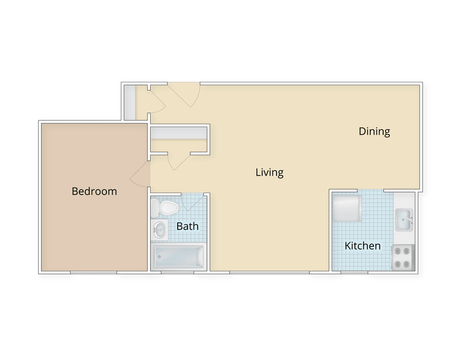Studio, 1 Bath, 407-524 sq ftAvailable NowModel Gallery