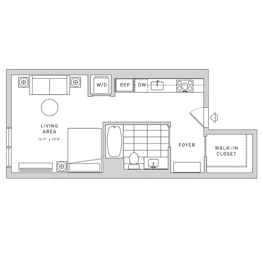 Studio / 1 Bathroom - Floorplan 11 Apartment Unit: 312Apartment Model: Studio / 1 Bathroom$3,515Studio, 1 Bath, sq ftAvailable March 23, 2026Apartment Unit: 108Apartment Model: Studio / 1 Bathroom$3,625Studio, 1 Bath, sq ftAvailable May 4, 2026FloorplansPhotos![]()