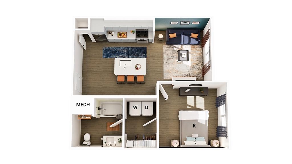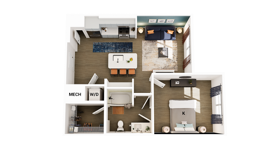 1 Bed, 1 Bath, 672 sq ftAvailable NowModel Gallery