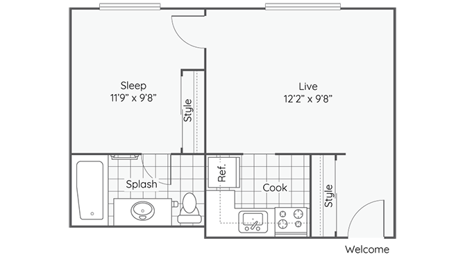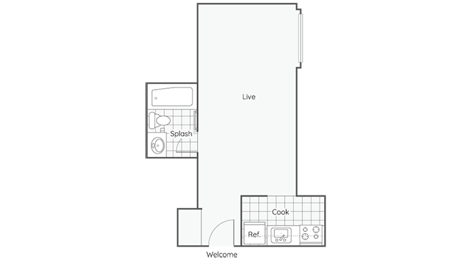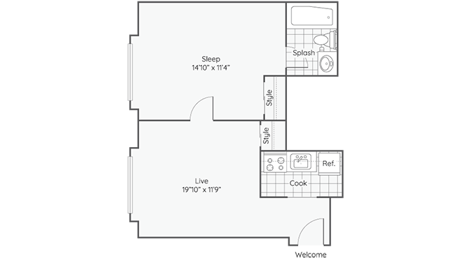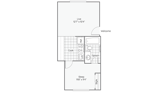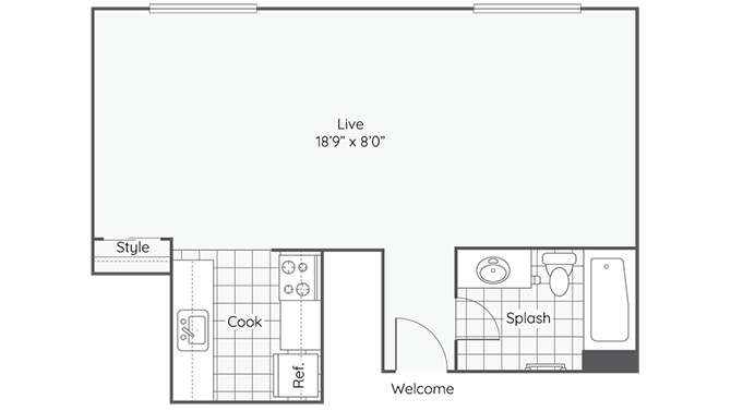 1 Bed, 1 Bath, 375 sq ftModel Gallery