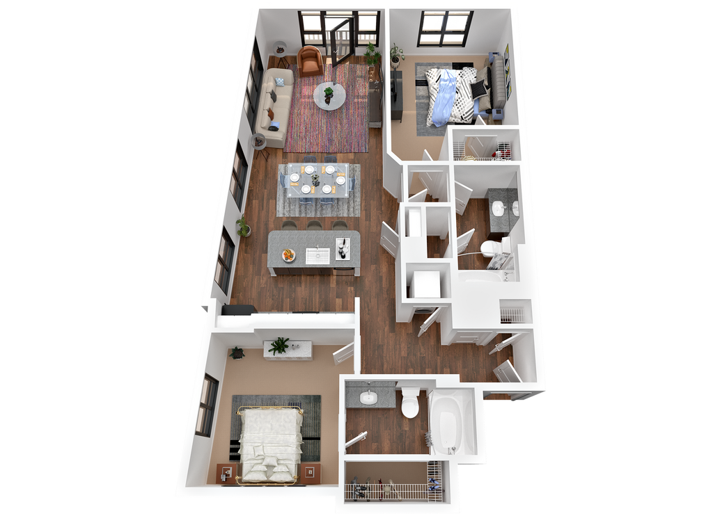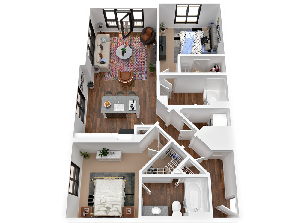 Apartment Model: Two Bedroom Two BathFrom $2,4592 Bedroom, 2 Bath, 1009-1185 sq ftAvailable Now![]()