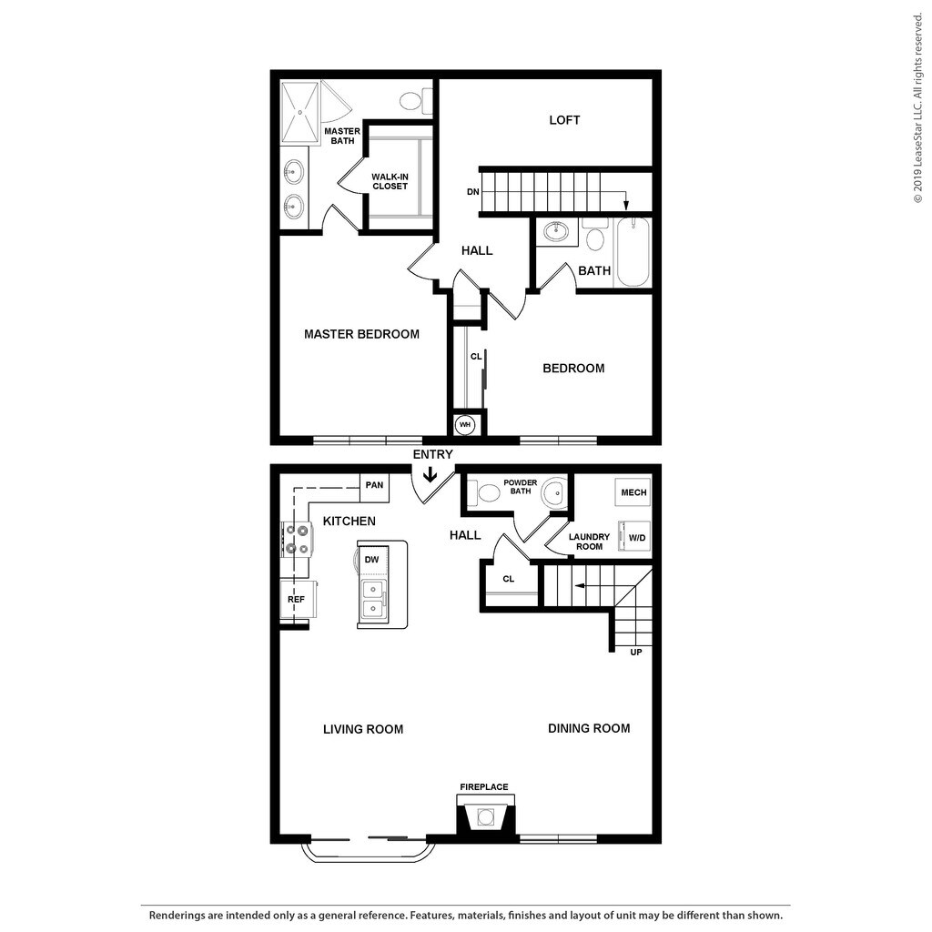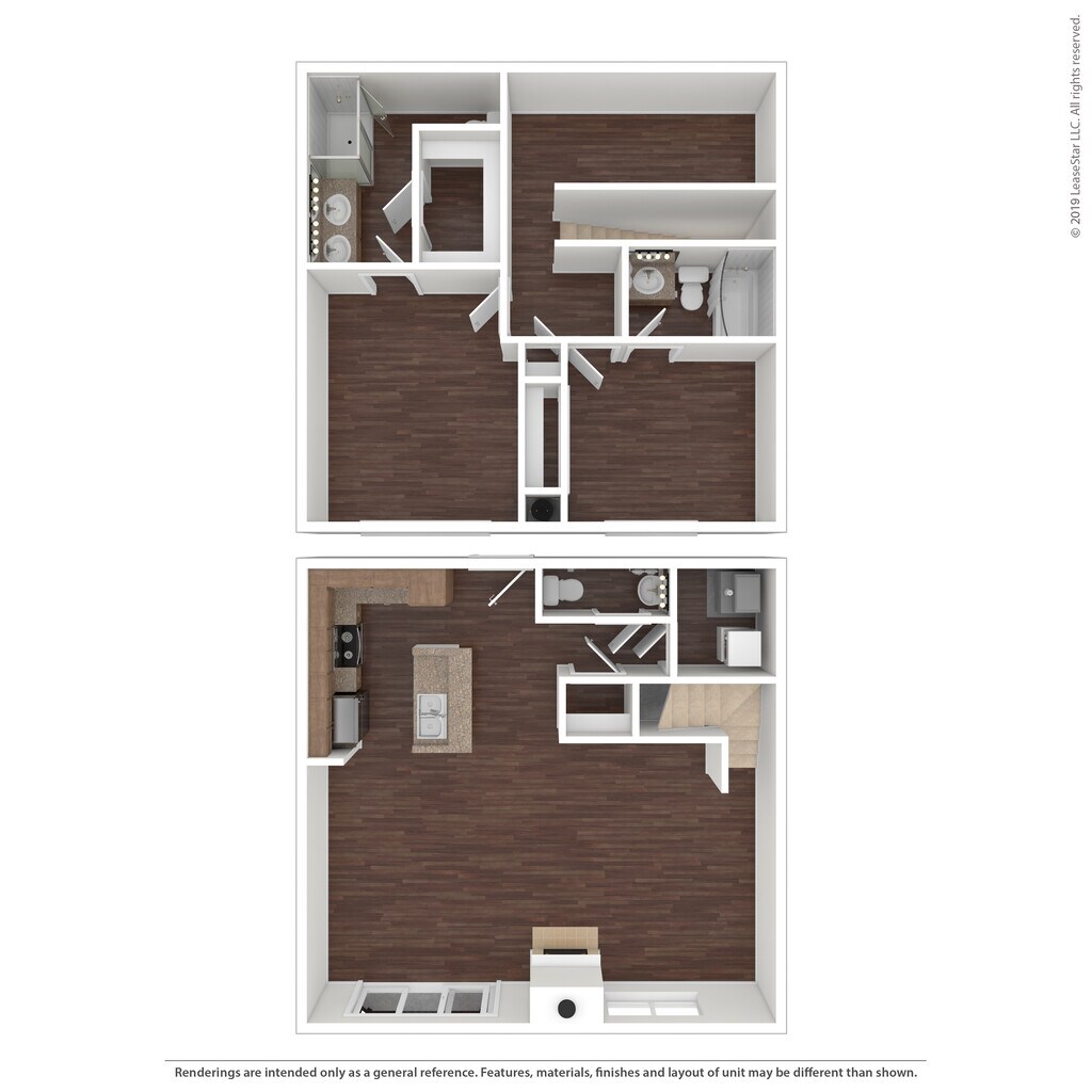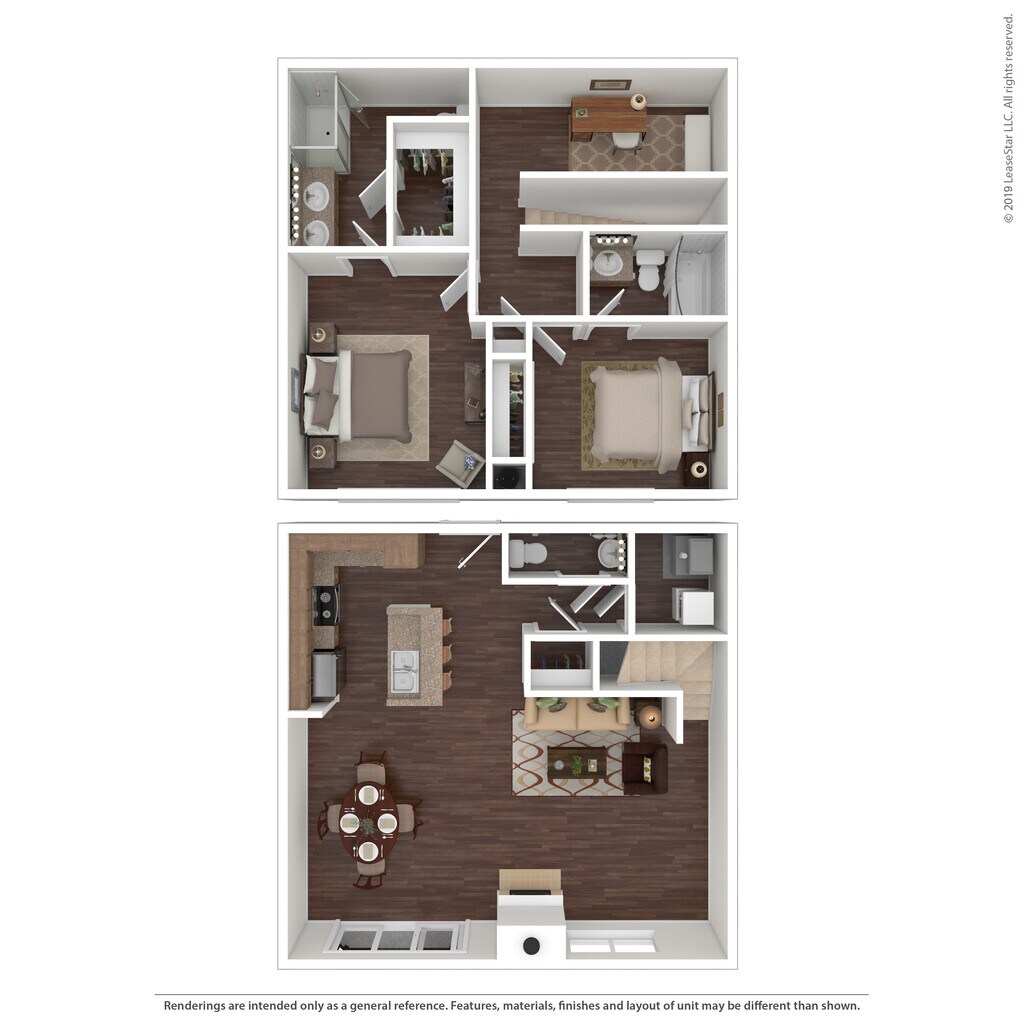 2 Beds, 2.5 Baths, 1540 sq ftAvailable May 13Largest 2 BedroomThis is the largest 2 Bedroom at this PropertyModel Gallery