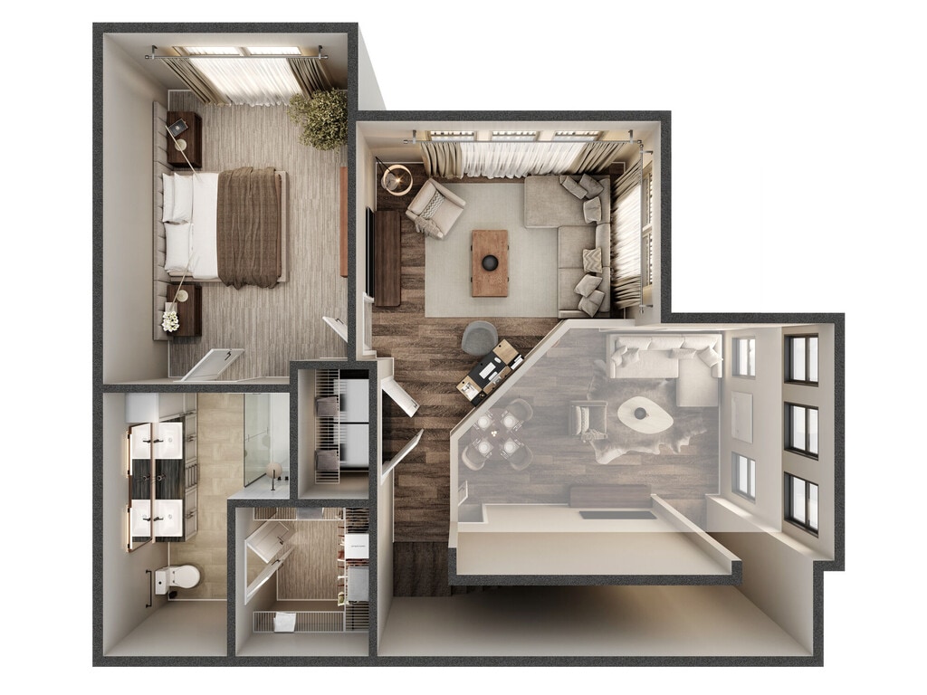 1 Bed, 1 Bath, 897 sq ftAvailable NowModel Gallery