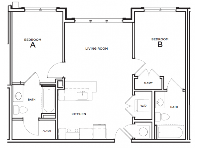 2 Beds, 1 Bath, 989 sq ftAvailable Aug 10Largest 2 BedroomThis is the largest 2 Bedroom at this PropertyModel Gallery