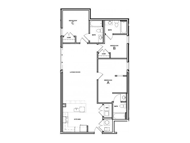 Bexley - B3 - Floorplan 1 Apartment Unit: PrivateApartment Model: Bexley - B3$1,3492 Bedroom, 2 Bath, 800 sq ftAvailable August 10, 2026Bexley - B Type A