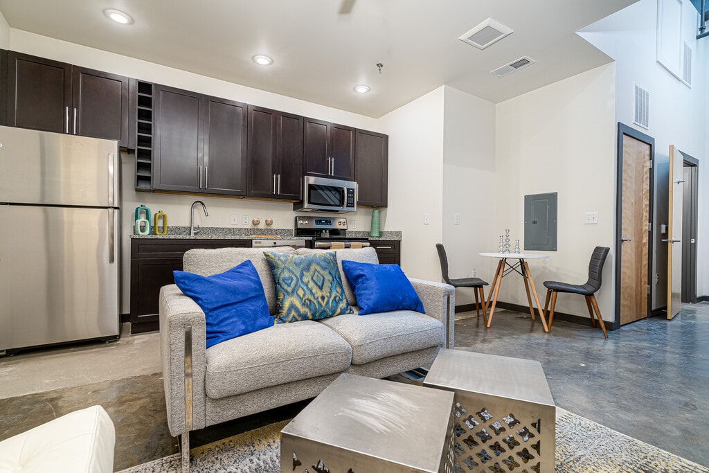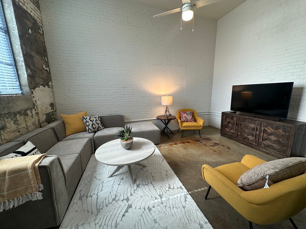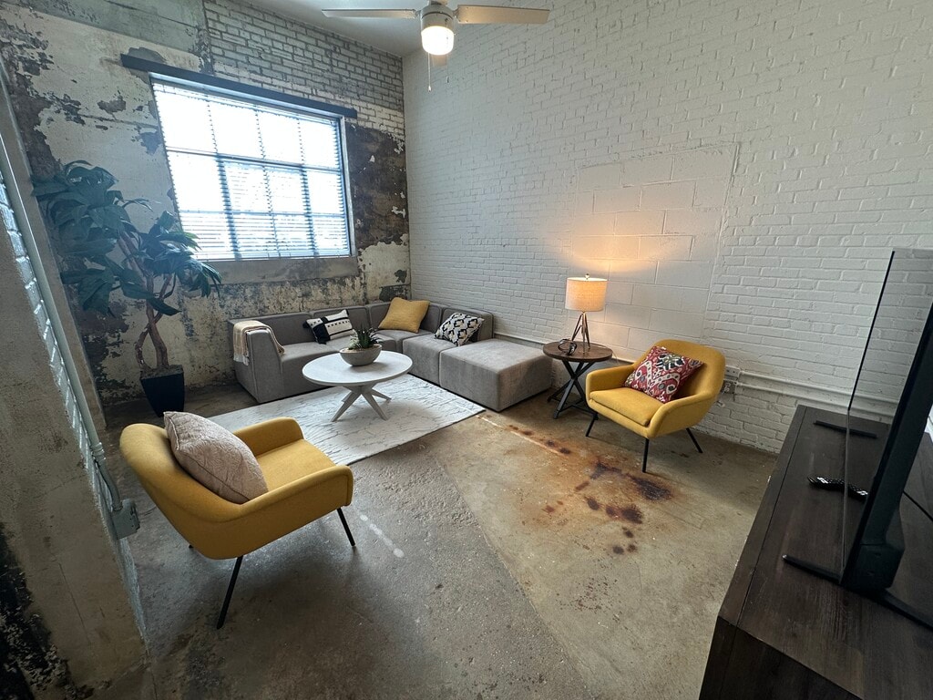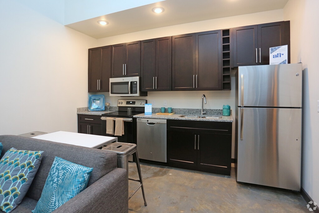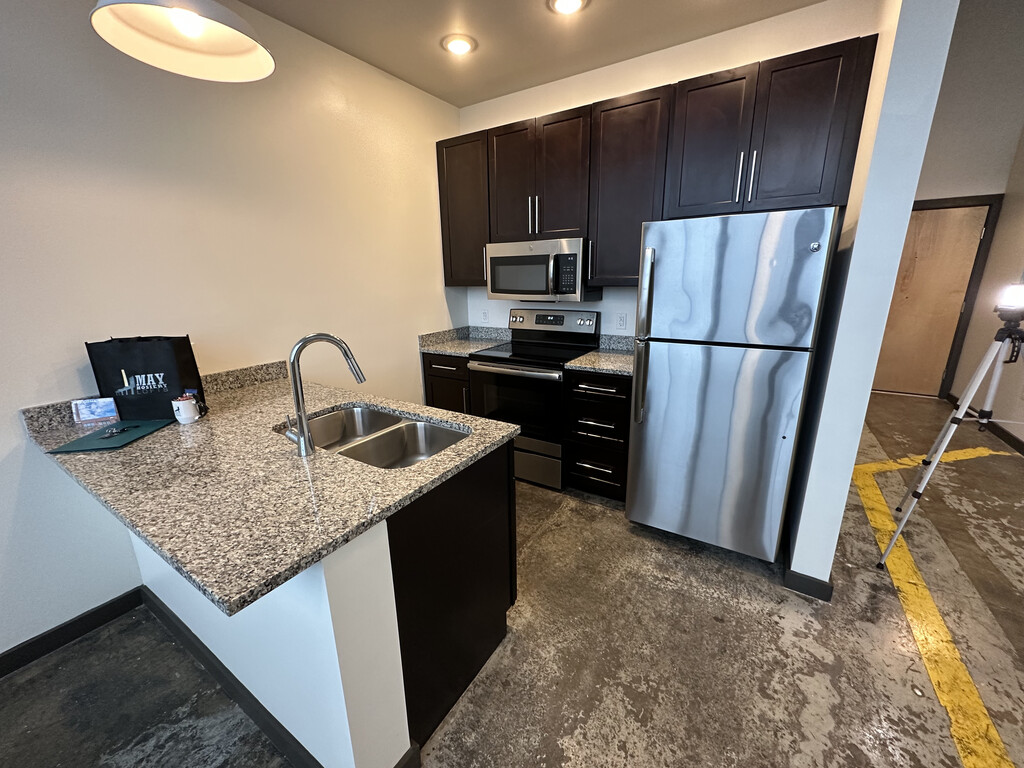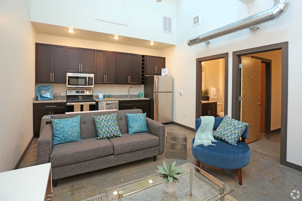 We offer 67 loft apartments all with their own unique design. Our open concept studio, 1 and 2 bedroom apartments feature granite counter tops, exposed brick walls, large, historic replica windows, original concrete floors, expansive ceilings, stainless steel appliances and washer/dryers in every unit.