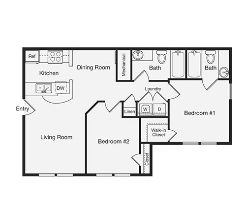 Apartment Model: Two Bedroom Apartment Home2 Bedroom, 2 Bath, 911 sq ftUnavailable![]()
