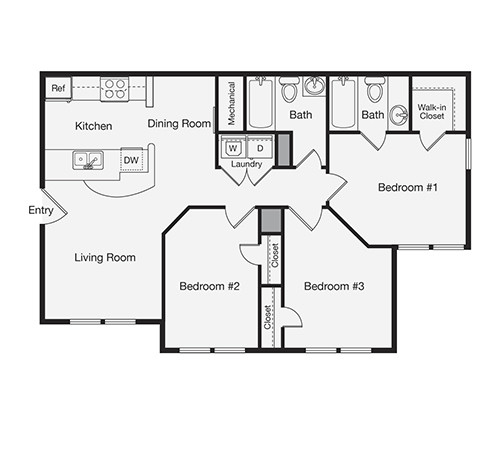 Apartment Model: Three Bedroom Apartment Home3 Bedroom, 2 Bath, 911-1092 sq ftUnavailable![]()