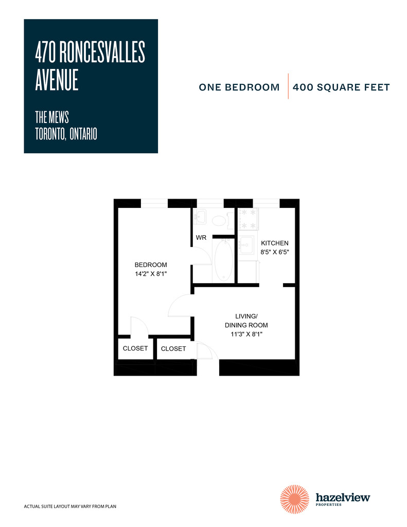 Maya Mews The Mews, a fully renovated apartment building in trendy Roncesvalles Village, combines its convenient Toronto location with beautiful suites available now. Our gorgeous bachelor and one bedroom suites feature bright living spaces and polished vinyl plank flooring throughout. Kitchens boast four stainless steel appliances, ample storage, and deep sinks. This pet friendly building also includes modern laundry facilities and surface parking for residents.This community is filled with specialty shops, boutiques, banks, and services; plus, two major shopping centres, Dufferin Mall and Stock Yard Village, are minutes away. Popular restaurants and bars are within walking distances, and cozy cafés are in the immediate area. Walk to High Park, Toronto’s largest public park with hiking trails, sports facilities, playgrounds, and picnic areas. At night, explore Queen West, the area’s best galleries, or take in an event at the nearby CNE, BMO Field, or Allan Lamport Stadium. Residents can commute easily with the Bloor GO station and transit stops steps away and quick access to the Gardiner Expressway. Incentive: • 2 Months free