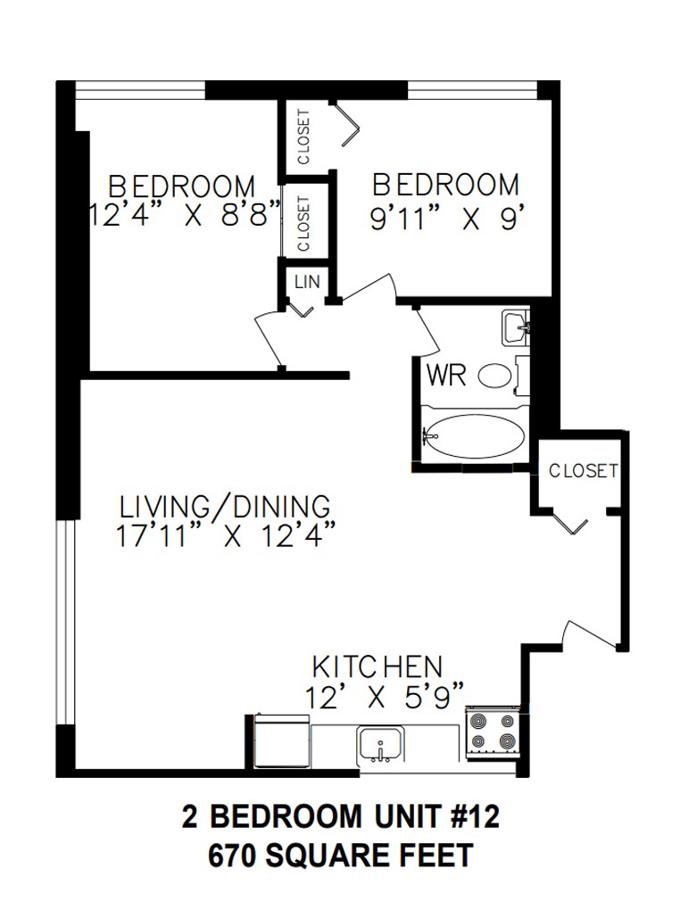 Apartment Model: 2 Bedroom2 Bedroom, 1 Bath, 670 sq ftAvailable Now![]()