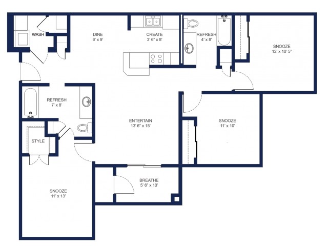 Apartment Model: The Berkeley3 Bedroom, 2 Bath, 1201 sq ftUnavailable![]()