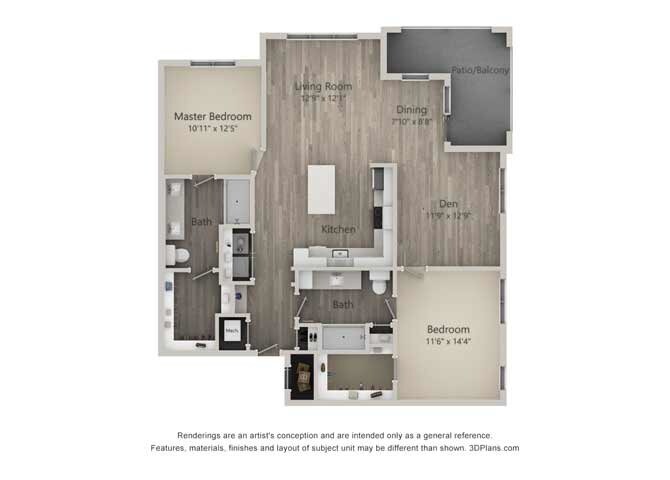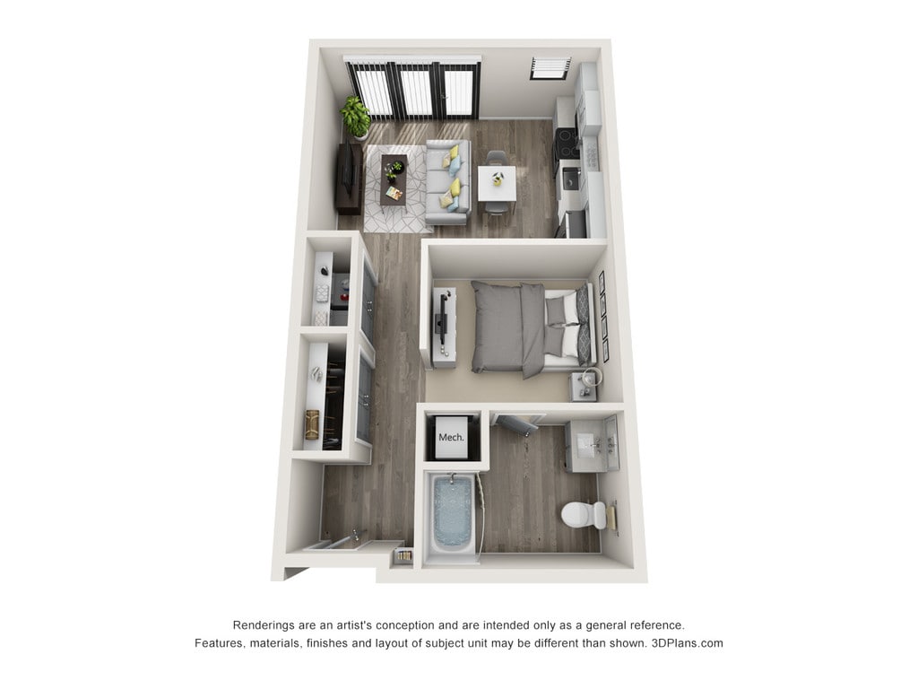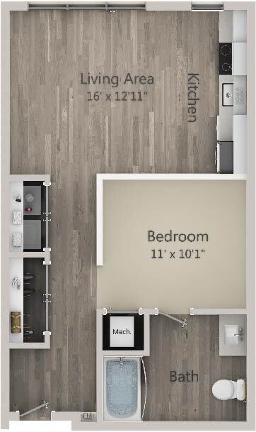 Studio, 1 Bath, 643 sq ftAvailable January 15, 2026Model Gallery