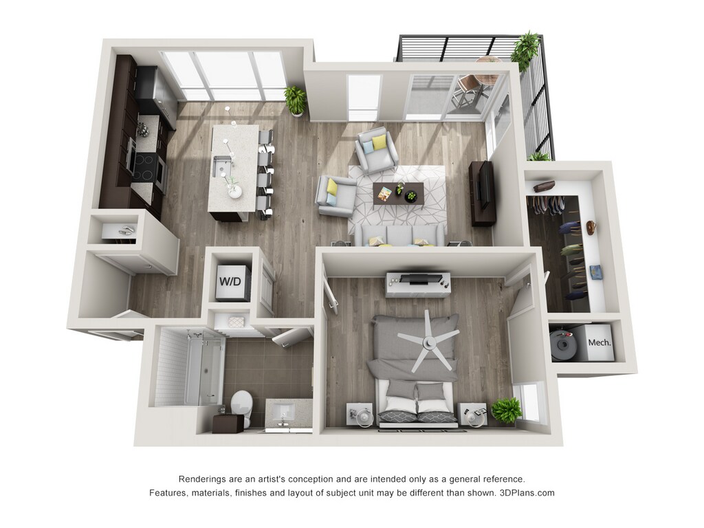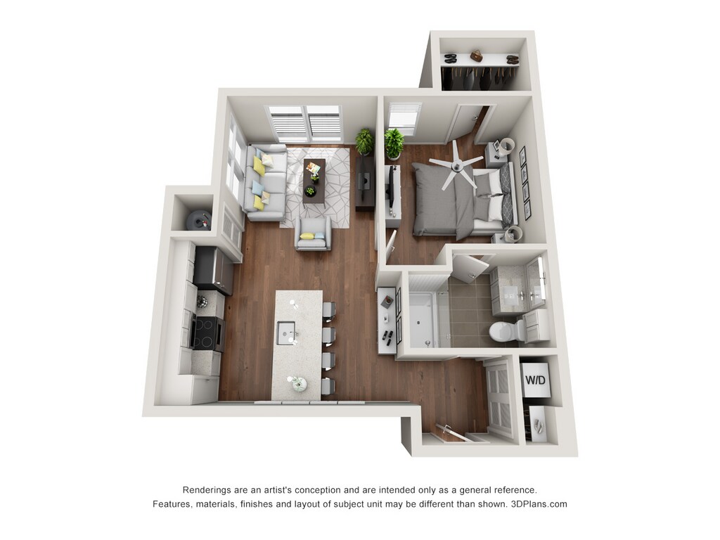 1 Bed, 1 Bath, 587 sq ftModel Gallery
