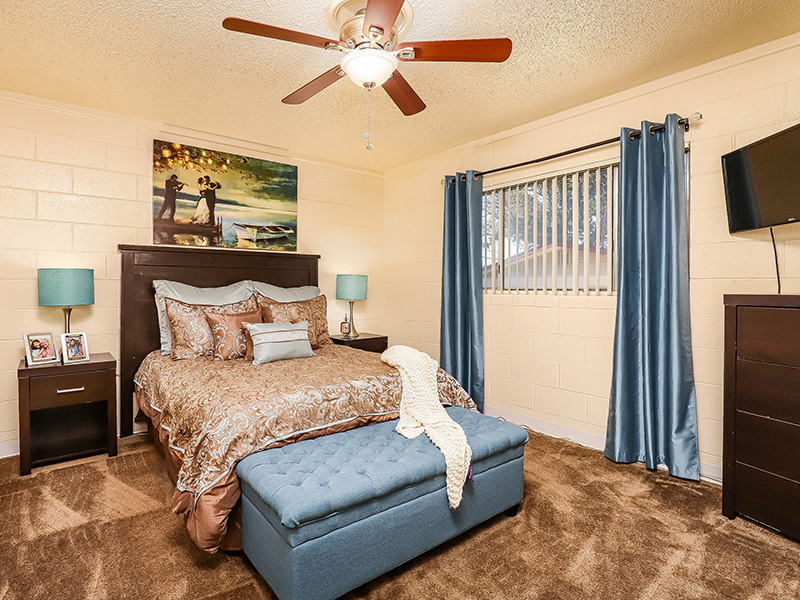 Mayflower Gardens provides you with the opportunity to really enjoy your retirement years! Since 1965, Mayflower Gardens has been providing a comfortable apartment living in a friendly, small-town atmosphere that boasts wide lawns, hundreds of full-grown trees, 502 apartments in 81 single-story buildings with front doors that open to a wide patio, and even a place to garden if you choose. All units include a ceiling fan in the living room, evaporative cooler, heater, cable TV and landline phone outlets, vertical blinds, screen door, tub and shower (handrails can be added at no charge), and ample closet storage. There is an extra charge added to the base rent for double occupancy. Please call or email for current rates and lease terms.