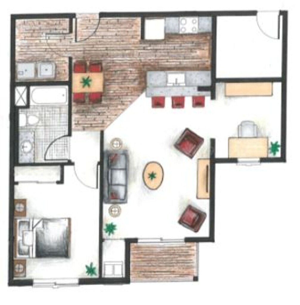 Apartment Model: 1 Bedroom + Den - CONTACT FOR AVAILABILITY$1,2651 Bedroom, 1 Bath, 917 sq ftAvailable NowFloorplansPhotos![]()