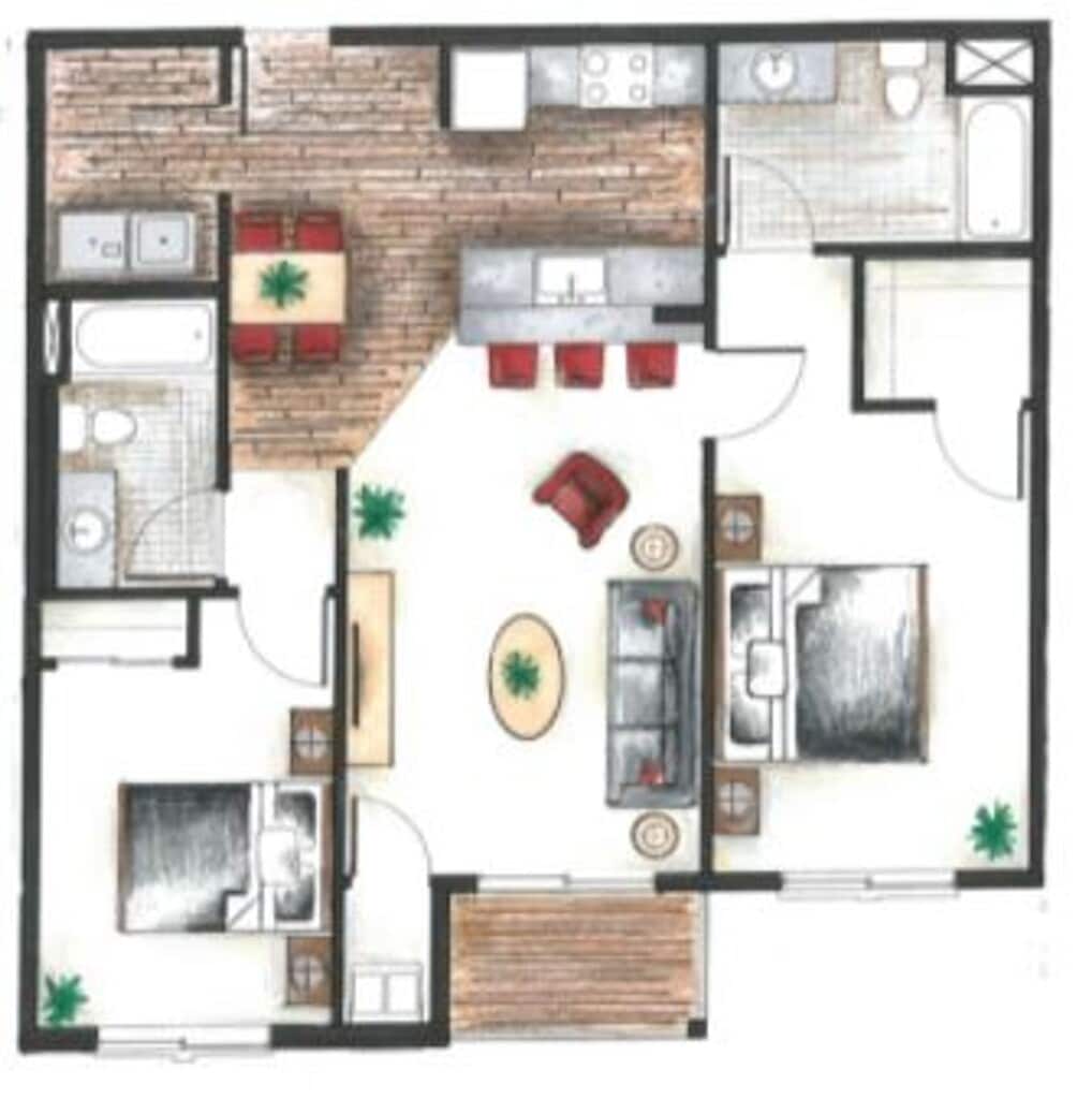 Apartment Model: 2 Bed 2 Bath HC - CONTACT FOR AVAILABILITY$1,3902 Bedroom, 2 Bath, 1058 sq ftAvailable Now![]()